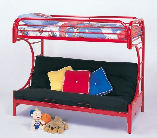 - Twin Full Size Futon Metal Bunk Bed with "C" Style in Red Finish