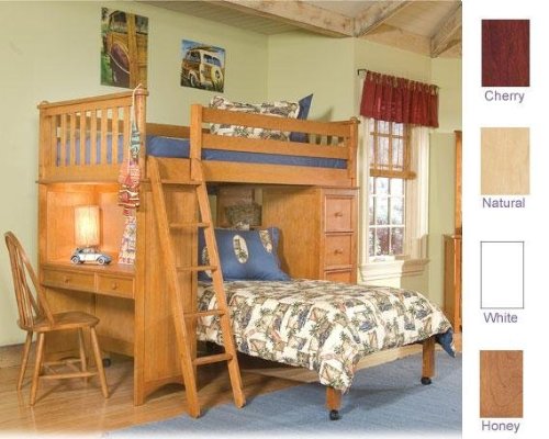 Childrens Twin Loft Bed with desk 4-drawer chest and shelves shown in a White Finish. Solid Frame Construction-Built To Last. Beds Come Complete w/Slat Roll - No Additional Support Necessary. Bed Assembly Features Barrel Nut & Bolt -Metal to Metal Connections. Solid Wood & Veneers. Country of origin: China Product Max Height: 71 Product Max Width: 44Product Max Depth: 80. Warranty Length: 1 year Warranty Term: Product guaranteed for 1 year against manufacturing related issues.