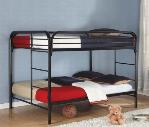 - Full Size Metal Bunk Bed Contemporary Style in Black Finish