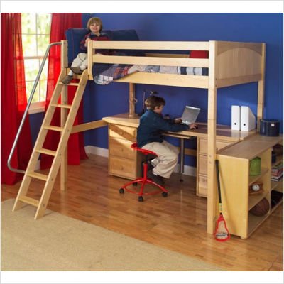Maxtrix Kids Grand 3 / Giant 3 Bigger kids – taller beds! When a low loft simply isn’t high enough anymore, the Full High Loft Bed with Long Desk and 3 1/2 Drawer Chests is even higher – creating space for a cool study environment right underneath the bed. Choose a straight or angle ladder, and bring home the perfect sleeping and studying area in one. Features: -Available in Natural Birch or Solid White finish. -Crafted from Birch hardwood and veneers. -Includes full size bed, front and back safety rails, high loft leg extension, ladder, long desk, and two 3 1/2 drawer chests. -Ladder available in straight or angle style. -Angle ladders are equipped with a sturdy handrail and all steps are extra broad and grooved to ensure safety. -Safety rail height is 11", 6" higher than federal regulation, while bed weight limit is 800 lbs. -Optional MaxSpring Luxury Mattress features all the comforts and spinal support of 207 spring coils (13.5 gage) reduced down to a compact size. -Optional Mattress Cover comes in blue or pink. -Overall Dimensions: 76.5" H x 80" W x 92" D. -Under Bed Height: 58". Assembly Instructions: Basic Full Bed Assembly Guardrail Assembly Straight Ladder Option Assembly Angle Ladder Option Assembly Long Desk Assembly Maxtrix Furniture merchandise is warranted to the original purchasers from authorized dealers for factory related defects (materials and workmanship) that appear under normal household use for a period of 5 years from date of shipment from the factory. This warranty is limited to replacement of the defective part, or substitution of product.