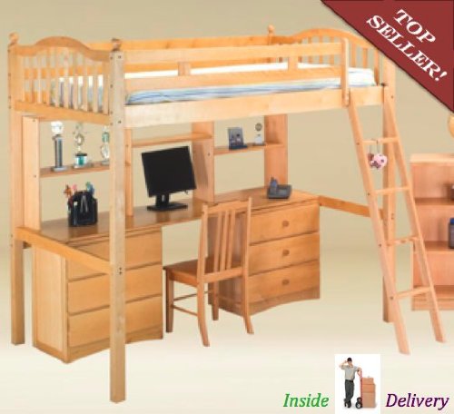 Best Price and the FASTEST shipping On The Web! Includes Desk and Chest FREE ! Loft Bed with Desk and Chest It\'s a study area and a bed all rolled up in one! The Good Trading Loft Bed with Desk and Chest is a sweet, classic country design that brings rustic charm to a kids bedroom. With its firm wood construction, attractive paneling, and built-in desk and chest, its sure to be a perennial favorite that recalls simpler days. Comes with both top twin loft and bottom twin bed, making it perfect for two children or for sleepovers. Available in white, birch (natural), or blue. Chair sold separately. Desk and Chest - FREE!! Make the into a study area and organizer with the desk and chest included FREE! Your child will love spending time studying and can create their own little area for work and play! This set features the bottom bed, desk, and attached 5 drawer chest to complete the Loft bedroom set. The chest is perfect for helping with organization and storage. Bottom Bed - FREE! You can\'t get a better deal than this - the set comes with a bottom twin bed, making it perfect for two children or for sleepovers. Perfect for the Desk! Matches perfectly with the desk, this chair will be perfect for your child\'s study area. It also never hurts to have a chair around...it may come in handy when your feet need a rest! Want Something Different? Try A Toy Chest! This cute accessory adds a touch of class to any bedroom. Kid\'s love having their belongings within reach and it makes for easy clean up at the end of the day. GUARANTEED Best Value and Price!