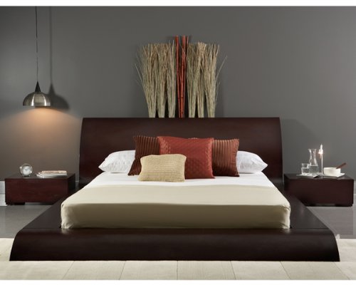 The breathtaking Waverly platform queen bed features a curved wood frame creating a beautiful silhouette from headboard to foot. The mattress (not included) sits snuggly atop a solid pine-slat mattress base for stylistic durability and added comfort.